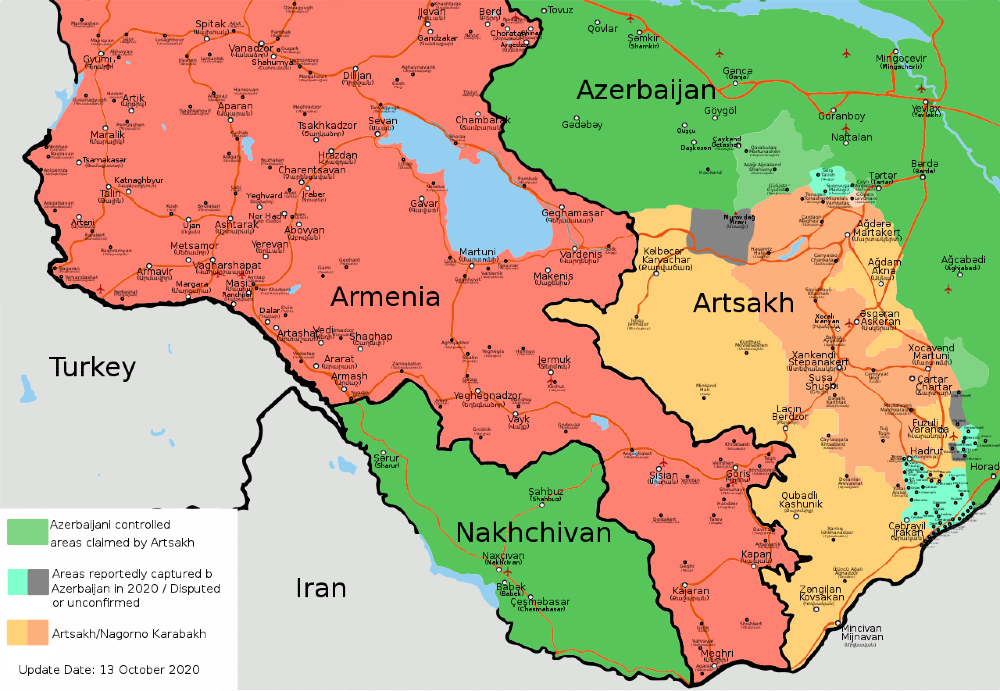 The war has not resulted in dramatic turnovers of territory, and has proven costly for both sides, expending manpower, munitions, and materiel. It is not clear if what Azerbaijan has gained so far — a strip of land in the south largely along the Iranian border — will suffice as a political victory for Azerbaijan’s leader, Ilham Aliyev. All together Azerbaijan may have captured 2.8 percent of the territory of Artsakh. At this stage the conflict may settle into a position war of attrition, but a genuine ceasefire is not on the horizon. Azerbaijan appears to have the capacity to destroy Armenian ground forces from the air, largely thanks to its unmanned aviation, but at the end of the day, only ground forces can seize and hold terrain. Tactical successes have not yielded a notable operational or strategic victory, and Baku’s path towards achieving political objectives via the battlefield remains unclear.