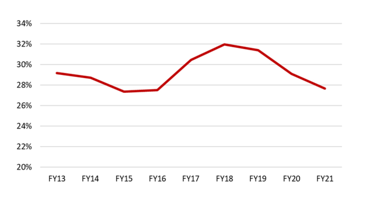 Figure 6: Contract Services as a Share of Operations & Maintenance Budget