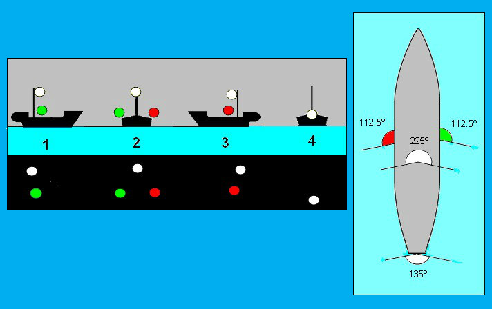 This represents the system of lights of varying colors that allow watch-standers to understand from where and how a ship is approaching.