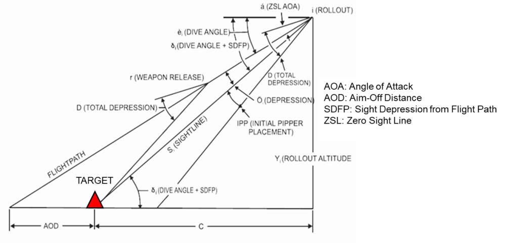 Back in the early days of bombing, before fighters had computers, dropping a bomb accurately required skill, training, and a bit of luck. Pilots had to use trigonometry to create a “bombing triangle” for every delivery. A typical Vietnam-era F-4 attack was a 45-degree dive at 4,500 feet above the target, while flying at 450 knots. The pilot had to navigate mainly using visual references on the ground and canopy angular references to be exactly 6,400 feet away from the target at release.