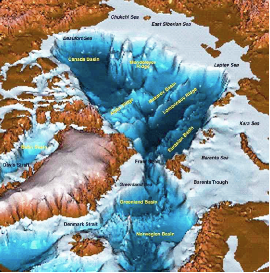 Variation in the depth of the Arctic Ocean will impact viability of shipping routes. Credit: 90-North.