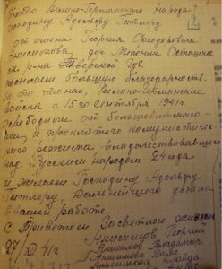 […] We express great gratitude for the fact that the Great-German troops since 15 September 1941 have liberated us from the Bolshevik yoke and the accursed Comunist [sic] regime that has ruled over the Russian people for 24 years and we wish Mr. Adolf Hitler good luck in your future work.