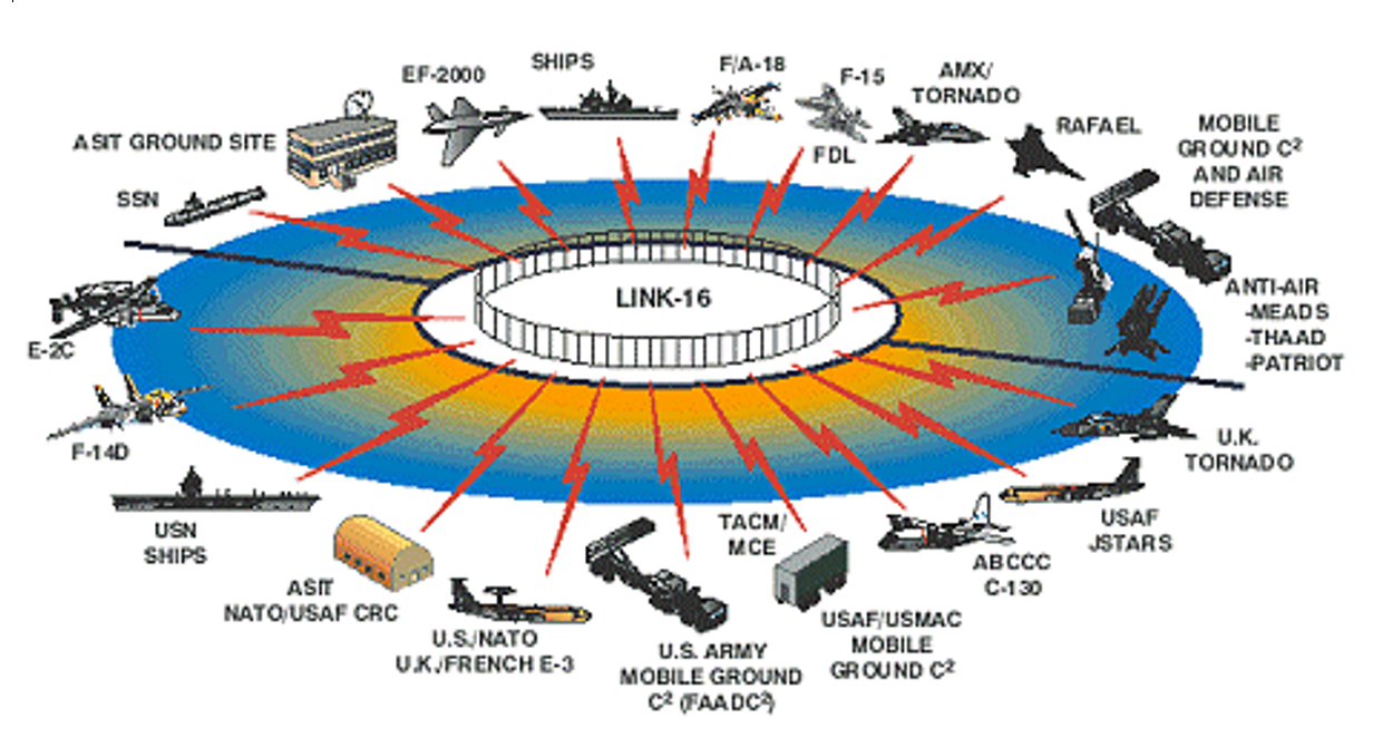 Figure 2: Link 16, which connects all of the depicted systems, is an example of how platform prerequisites make integration possible. (Source: Naval Postgraduate School Master’s Thesis.Unclassified and approved for public release)