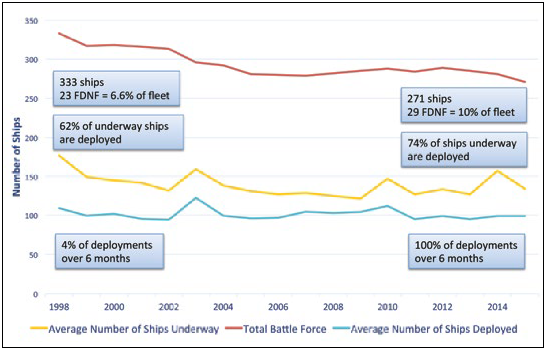 Figure 2: Navy ships deployed and underway, 1998 to 2014
