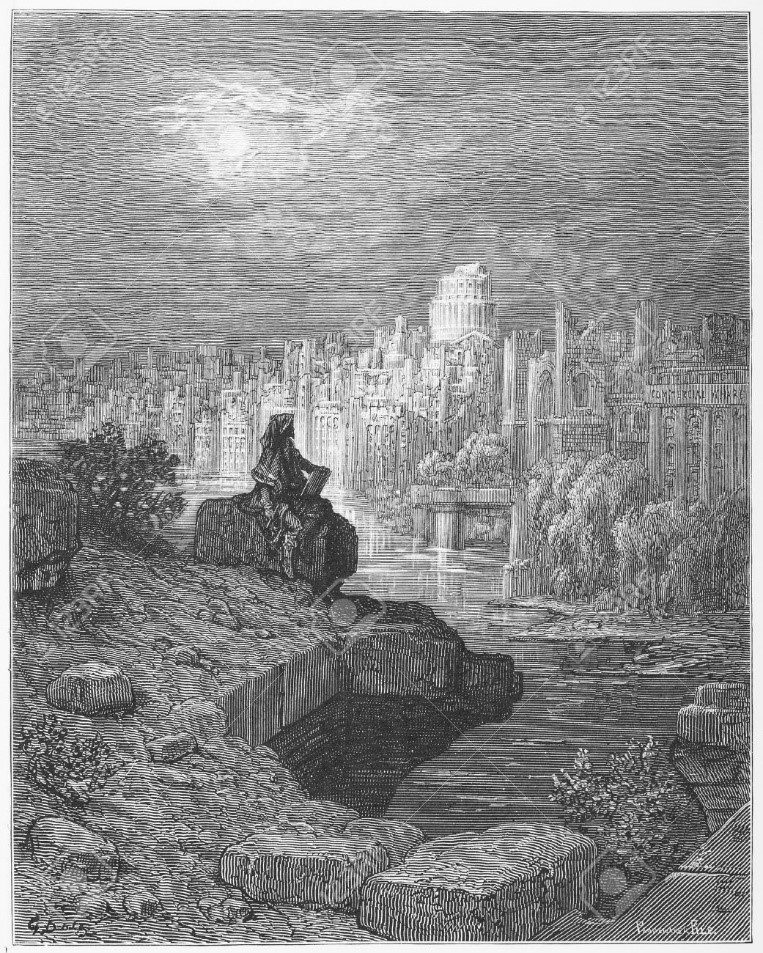 The New Zealander, engraving by Gustave Doré, 1872. (Source: Wikicommons)
