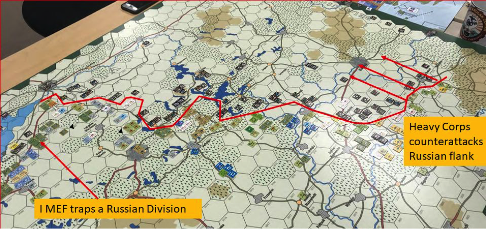 After days of hard fighting, NATO managed to stabilize its front, making it possible to pull several heavy divisions off the line and launch a devastating counter-attack on the Russian southern flank, while a marine expeditionary force trapped an entire Russian division in the north. At this point, intercepts of Russian communications indicated their commanders were asking for nuclear release.