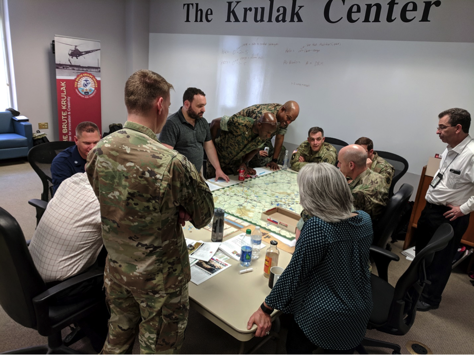 The War College was also ably assisted by Col. Tim Barrick and Mark Gelston from the Marine Corps Warfighting Lab’s Wargaming Division, and by some folks from the local gaming community who were indispensable in helping with the mechanics of each game, allowing the students to focus on operational and strategic decision-making.