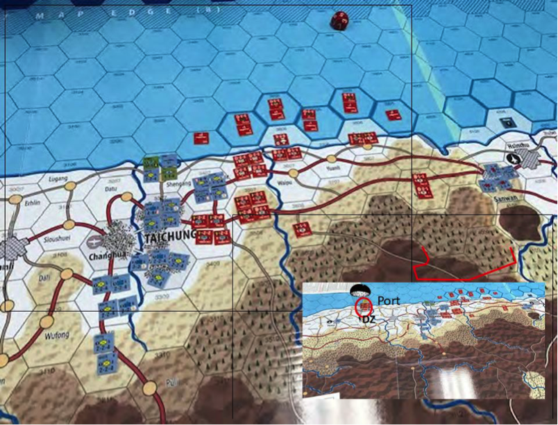 In Taiwan, after a brief but spirited defense of the nation’s beaches, Taiwanese troops were forced, by a successful Chinese airborne assault that captured a port in their rear, to retreat into the nation’s mountainous interior.