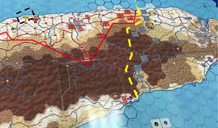 As there was not enough American combat power to fight and win three simultaneous major conflicts, hard strategic choices were unavoidable. The American team quickly decided that losing Taiwan was not an existential threat to the United States, and except for a token Marine Corps force, Taiwan was left to fend for itself on the ground while substantial American air and naval assets challenged China’s access. The U.S. players viewed Taiwan as an economy of force effort that would be reinforced with ground troops once the big fight (Russia) was won. In the meantime, Team America opted to defend Taiwan with air and naval power, which continuously plagued Chinese attempts to reinforce their troops on the island. Similarly, South Korea, while viewed as crucial to long-term U.S. security, was also responsible for its own defense, although the American 2nd and 25th Infantry Divisions arrived in force early-on, as did two regiments of American Marines. Still, the bulk of the fighting was left to South Korean forces.