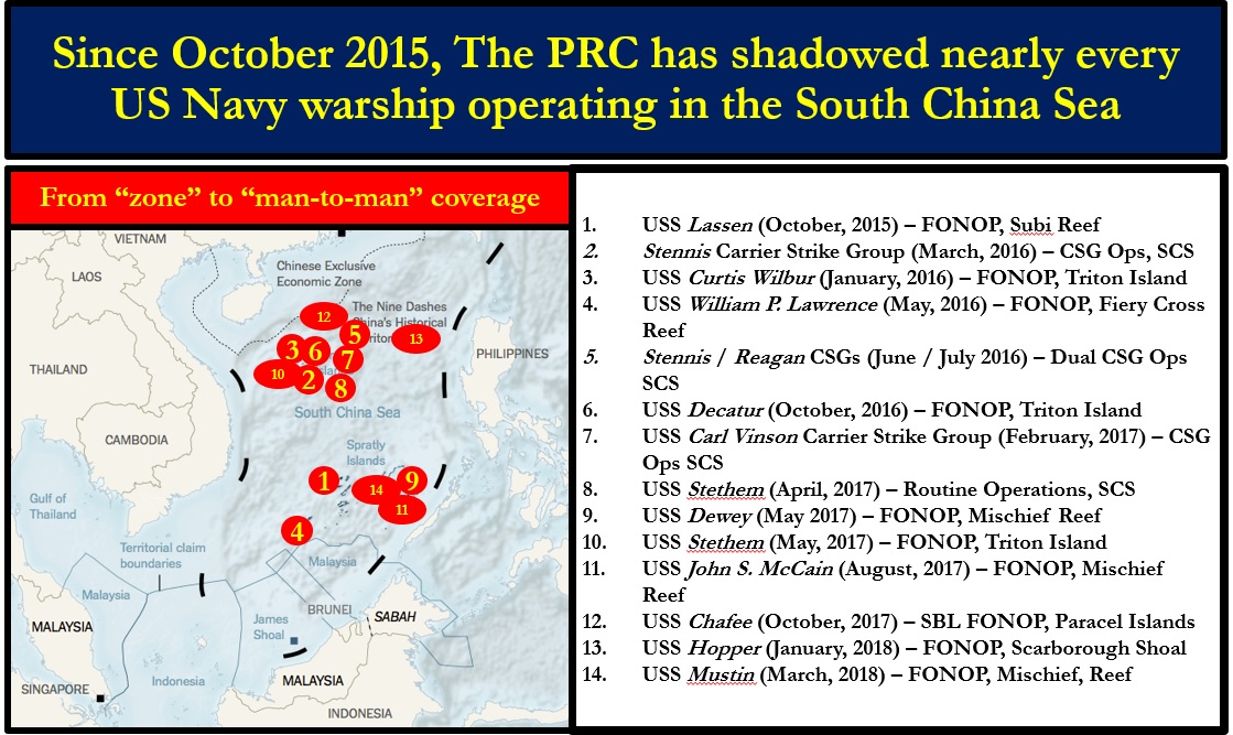 Figure 3. People’s Liberation Army Navy actions in the South China Sea since 2015 (Source: James E. Fanell’s ‘Asia Rising: China’s Global Naval Strategy and Expanding Force Structure’)