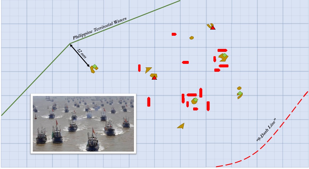 Figure 2. China’s “Cabbage Strategy” in execution, including the use of hundreds of maritime “militia” vessels (Source: Authors).