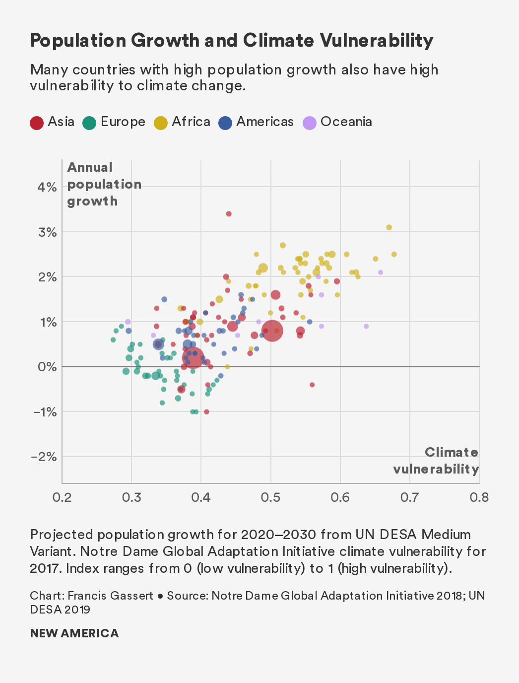 The inequity within U.S. borders mirrors the global impacts of climate change, which will disproportionately affect countries in the subtropical and tropical parts of the globe. That puts most of the population of Africa in the climate change crosshairs, as well as hundreds of millions of people in South Asia, the Middle East, South America, and Central America. Many of the affected countries, especially in Africa, have growing, high-density populations with high societal vulnerabilities, as measured by per capita income, life expectancy, maternal health and infant mortality, access to clean water, and other factors. The reasons for the disparity with mid-latitude countries are complex, but include centuries of disadvantageous interaction with the forces of industrialization that largely caused climate change in the first place.