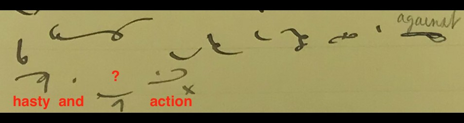 The symbol for “new” is not a perfect fit. In particular, the caret underneath the swoop is differently placed, and the diary entry also contains a small loop (called an “s-circle”) at the beginning. It may have been for these reasons that the translator did not transcribe the word as “new.”