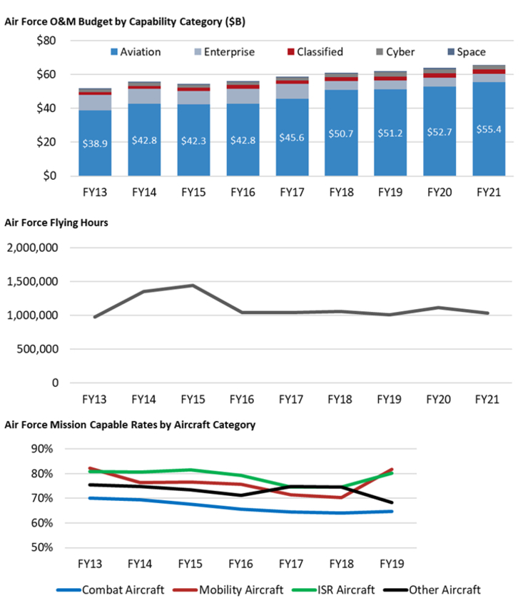 Figure 5: Air Force Operations & Maintenance, Flying Hours, and Mission Capable Rates