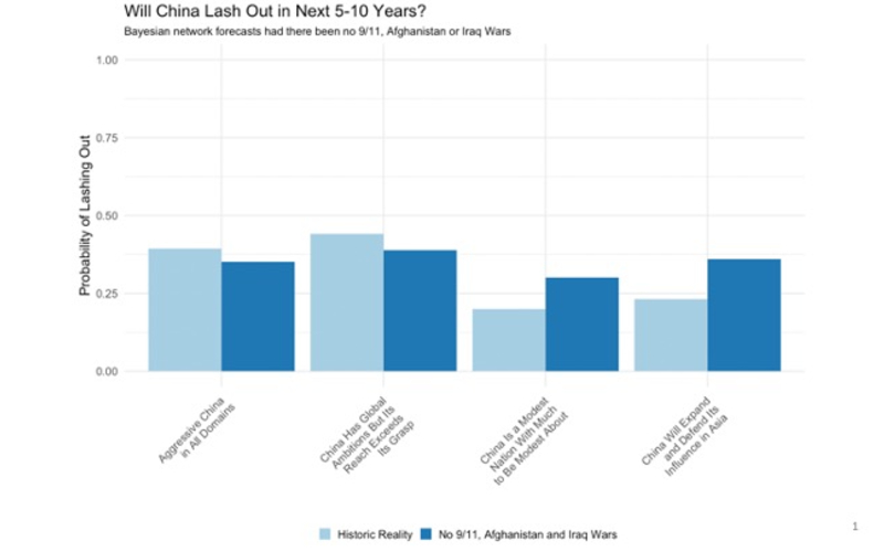 More significantly, however, the implications of the Bayesian net are far-reaching — not only to historians but to policymakers and politicians. When we lay out our beliefs so unusually openly, we may discover policy debates in which we are arguing about the wrong things — indeed, we may not need to argue at all! If even a major change to the past, such as the subtraction of the 9/11 attacks, does little to impact expectations of the future, one has to ask which, if any, policy decisions matter. At the very least, the bar for what constitutes “significant” may be much higher than normally assumed. As Steinberg summarized his article on the collapse of relations between Beijing and Washington: “My point is that even if decisions were wrong, were they consequentially wrong? That is, would a different decision likely have made a significant impact on the overall trajectory of the relationship? Not really.”