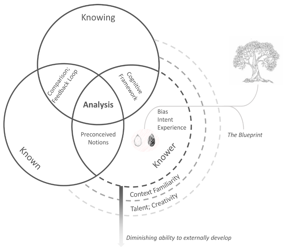 The analyst is the knower. In this way, the analyst is the sum of all their experiences, biases, intentions, and motivations. Therefore, the volume, diversity, and quality of knowledge and experiences an analyst gains directly impacts the quality of their analysis.