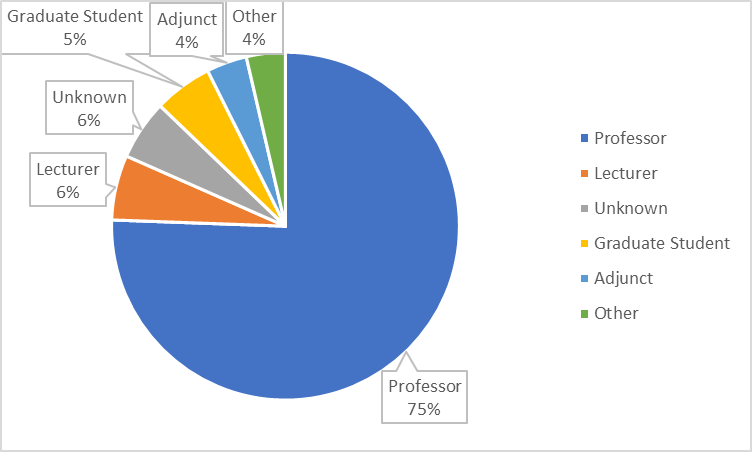Figure 5: On average over six years, 75 percent of war-related courses have been taught by tenure-track faculty.