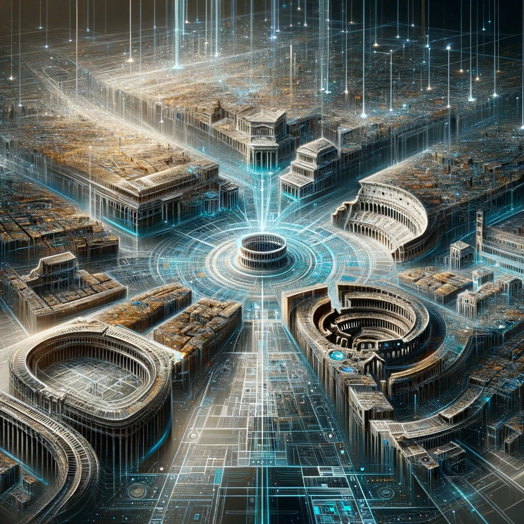 And what kind of maps will this caliber of program be able to produce? I asked ChatGPT to show me a historic map of Rome as generated by an even more advanced form of AI. Undeterred by any logical reservations, it provided a truly compelling vision of Space Rome, with at least 3 1/2 coliseums all radiating around a central one.