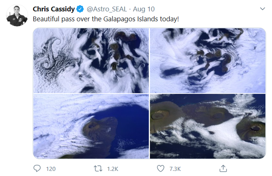 U.S. Navy SEAL and Astronaut Chris Cassidy tweets a photo of the Galapagos Islands Aug. 10. (Screenshot by the author)