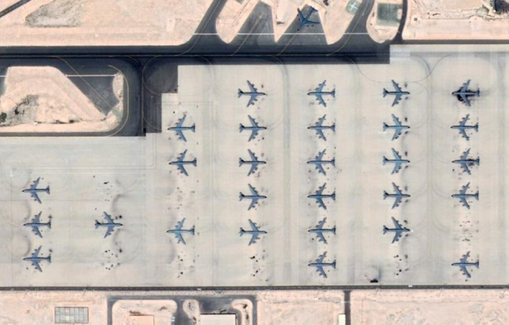 Figure 1: A fleet of forward-deployed KC-135s are a permanent fixture at Al Udeid Air Base, Qatar. (Source: Google Earth)