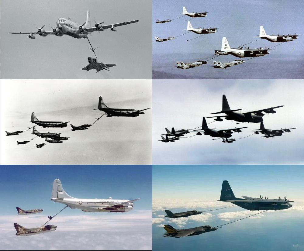 Figure 2: Air Force KC-97 (left) and Marine Corps KC-130 (right). Propeller-driven tankers aerial-refueling multiple generations of U.S. jet fighters. (Source: U.S. Air Force and U.S. Navy)