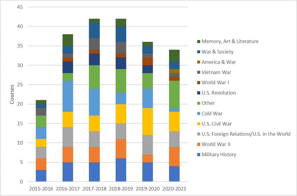 Figure 2: Discounting courses on U.S. foreign relations and the Cold War, American universities have offered numerous courses over the last six years on modern wars.